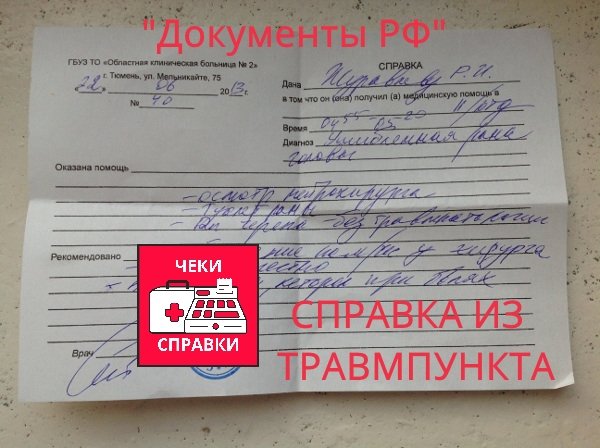Справка из травмпункта – это оправдательный документ, который может понадобиться в разных жизненных ситуациях. Случается множество неприятных случаев, когда следует оформить такую мед.справку: ДТП, нападение на человека, просто падение при плохой погоде. После происшедшего вряд ли первая Ваша мысль будет о том, что срочно нужно посетить больницу и приобрести данный документ. Если было совершено нападение, то при подаче заявления в правоохранительные органы потребуют справку о побоях из травмпункта. В подобных ситуациях оправдание тем, что Вы находились в состоянии шока и не успели вовремя получить справку о нанесенных ранениях, приемлемо. Наша компания в Москве поможет купить справку из травмпункта конфиденциально и задним числом. Все, что необходимо сделать Вам это обратиться к нашим представителям по указанным выше номерам телефонов или же сразу заполнить форму заказа у нас на сайте. Мы всегда рады помочь!